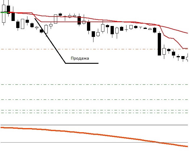 При продаже скользящая и супертренд пересекаются, только наоборот. Но при этом у подвального ТМА цвет продажи, т. е. красный.